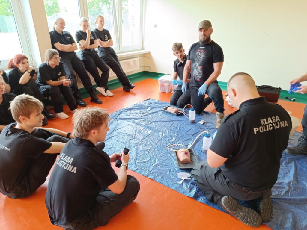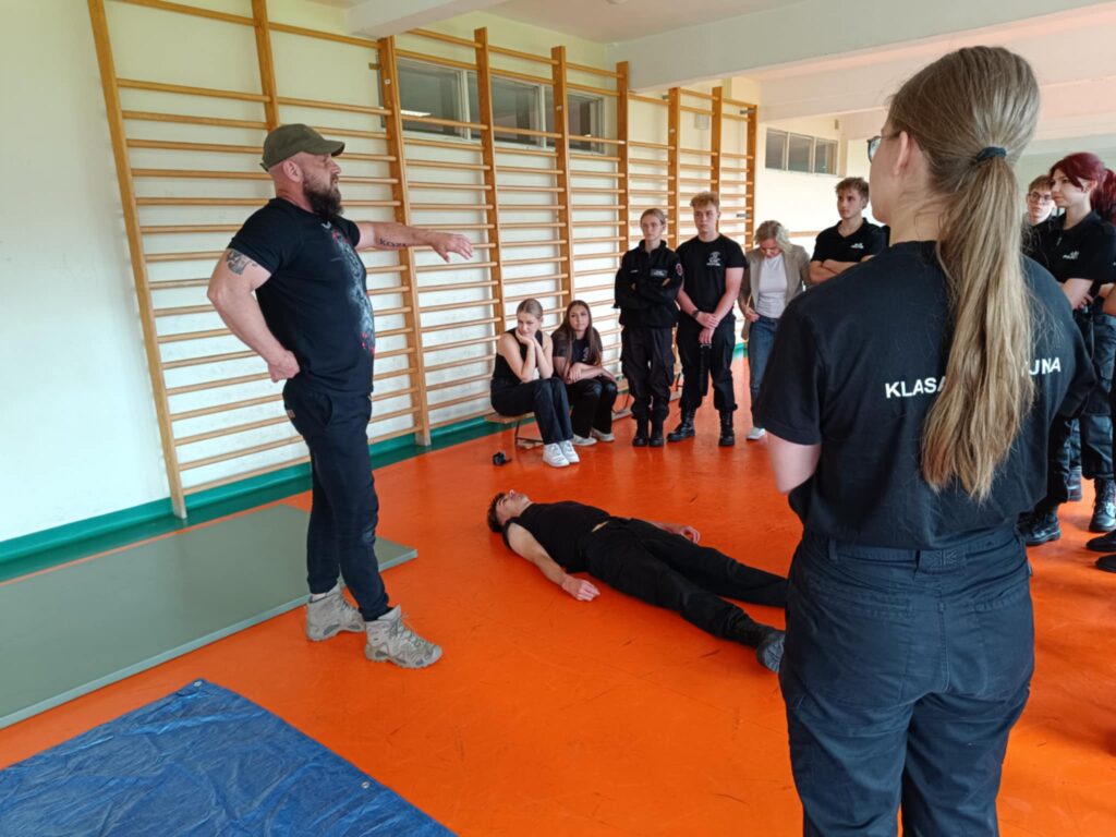 Uczniowie klas o profilu mundurowym mieli okazję uczestniczyć w wyjątkowych zajęciach z ratownictwa taktycznego, prowadzonych przez pana Bogdana Serniaka – doświadczonego policjanta z wieloletnią praktyką w jednostkach kontrterrorystycznych, a także specjalistę w dziedzinie medycyny pola walki.