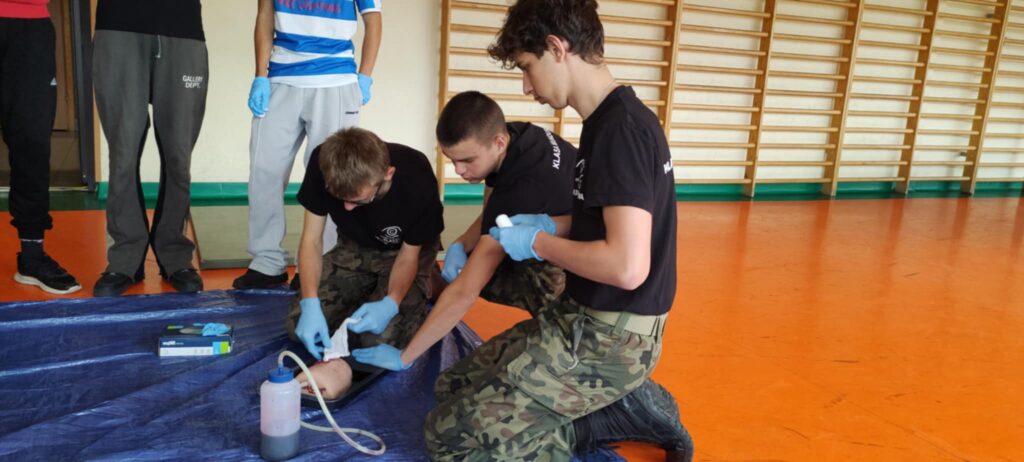 Podczas spotkania uczniowie poznali podstawowe procedury udzielania pomocy nie tylko w warunkach bojowych, gdzie liczy się każda sekunda, a zagrożenie może przyjść z każdej strony. Zajęcia obejmowały zarówno część teoretyczną, jak i praktyczną. Młodzież uczyła się m.in. tamowania masywnych krwotoków, stosowania opasek uciskowych, podstaw komunikacji i współpracy w stresujących warunkach.