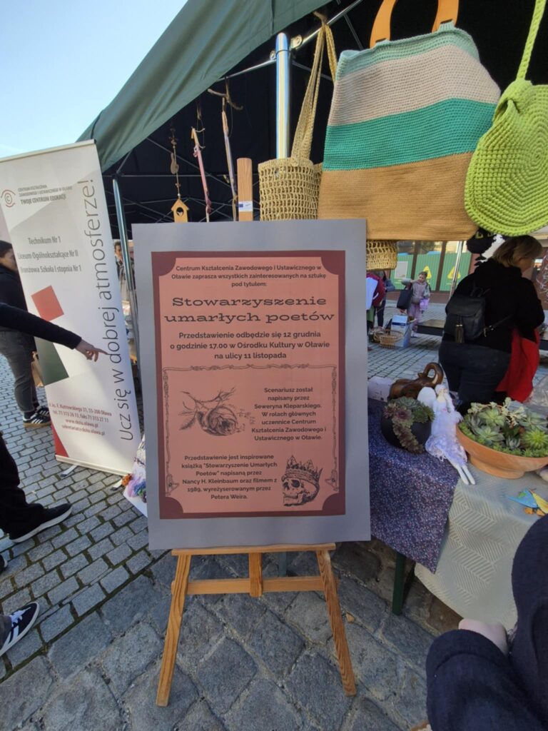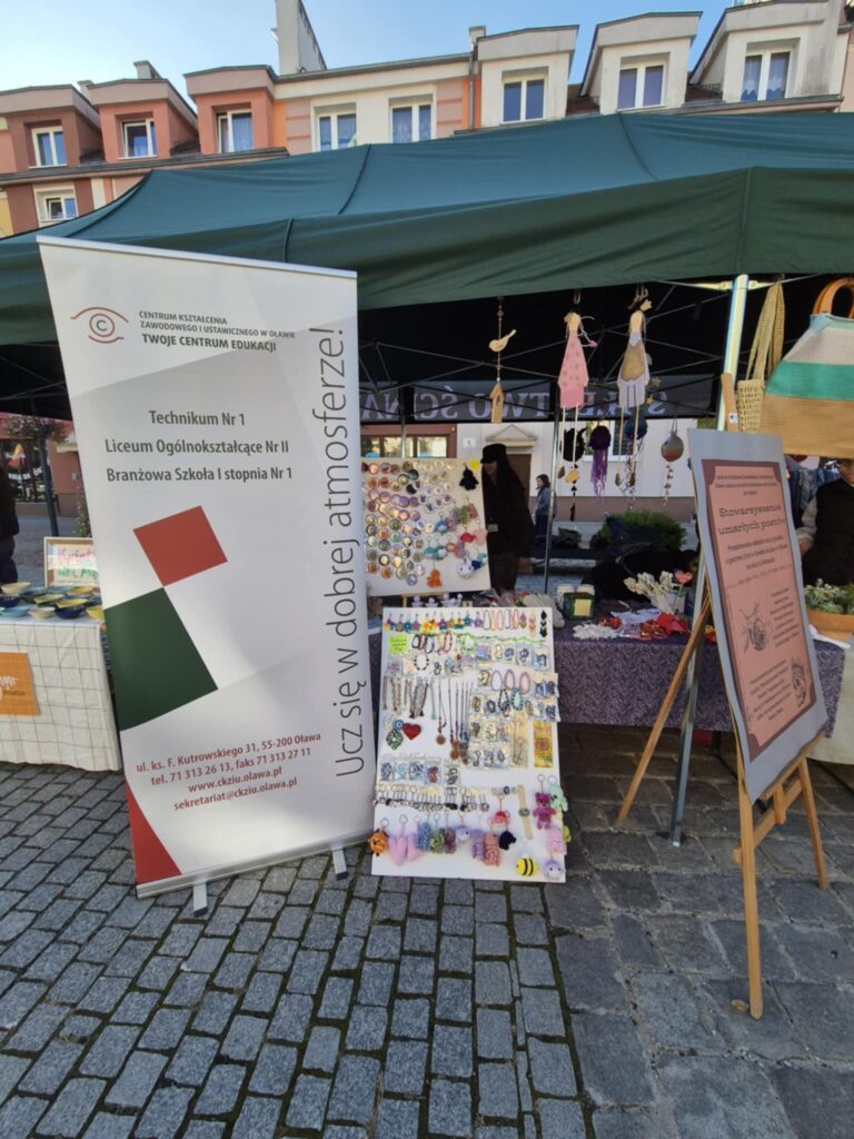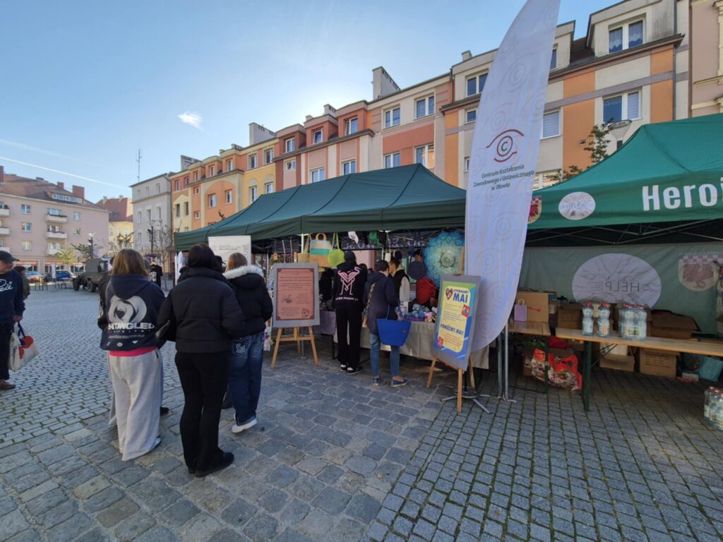 28 września na oławskim Rynku, w ramach Oławskiej Niedzieli Przedsiębiorczości, odbyła się uroczysta akcja charytatywna pod hasłem „Pomagamy Mai Zegar” – naszej koleżance z klasy 2GP, która zmaga się z chorobą nowotworową. Po wcześniejszej, niezwykle udanej sprzedaży ciast na terenie szkoły, dzięki której udało się zebrać imponującą kwotę 9 070 zł, przygotowaliśmy własne stoisko z rękodziełem wykonanym przez uczniów, nauczycieli oraz przyjaciół szkoły.