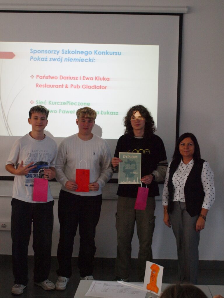 Uczniowie klas pierwszych Centrum Kształcenia Zawodowego i Ustawicznego w Oławie mieli okazję zaprezentować znajomość języka niemieckiego w drugiej edycji Szkolnego Konkursu z Języka Niemieckiego „Pokaż swój niemiecki”, który odbył się 31.10.2025