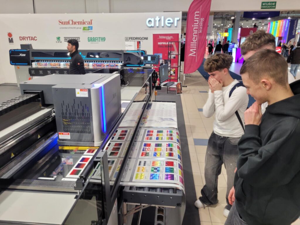 Uczniowie rozmawiali z przedstawicielami firm, poznawali trendy w projektowaniu graficznym oraz obserwowali procesy produkcyjne – od koncepcji po gotowy produkt. Dla wielu była to inspirująca lekcja i cenne doświadczenie zawodowe.