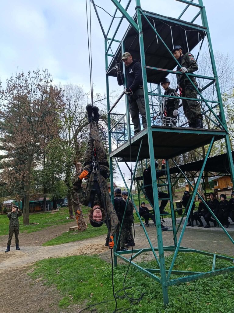 Uczniowie zdobywali również umiejętności z zakresu technik linowych, w tym technik pionowych, bojowych oraz transportu linowego.